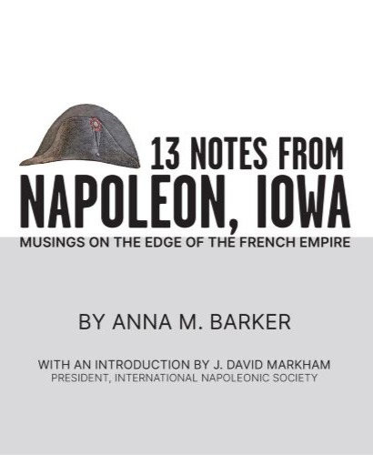 Anna Barker’s book, 13 Notes from Napoleon, Iowa: Musings on the Edge of the French Empire, illuminates multiple aspects of Iowa’s Napoleonic past such as Iowa cities named after the Napoleonic battles of Marengo and Waterloo and explains the mystery of Iowa’s distinctly French-looking flag.