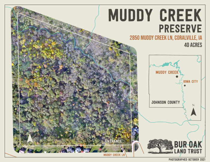 Join Bur Oak Land Trust staff for an off-trail hike at Muddy Creek Preserve. Hear from staff about recent restoration projects at the preserve and future plans as you immerse yourself in nature.