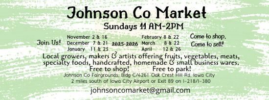 During these cold fall and winter months, take advantage of this warm indoor market, featuring local growers, makers, and artists offering fruits and vegetables, meats, specialty foods, handcrafted, homemade and small business wares. Free to shop and park. Come on in and browse!