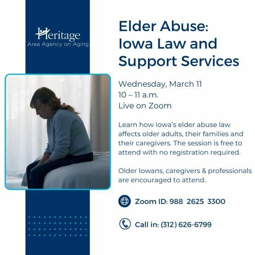 Join Heritage Agency on Aging staff for this important Zoom session, and learn how the law affects older Iowans, their families and their caretakers.