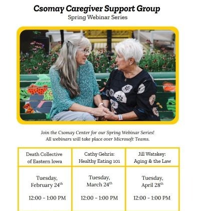 The Csomay Center for Gerontological Excellence invites area caregivers, family members, and caregiving professionals to its Spring Webinar Series.