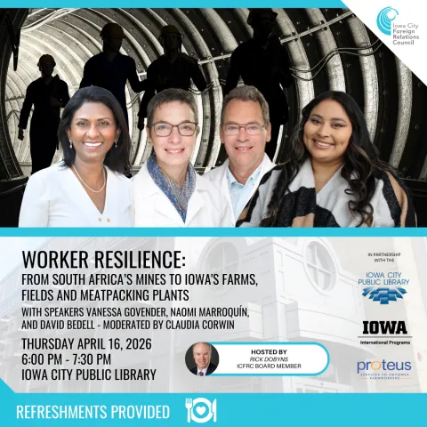 What can Iowa learn from the struggles of mineworkers in South Africa? This Iowa City Foreign Relations Council panel discussion connects the global story of dust, disease, and dignity to the realities of Iowa’s fields, factories, and immigrant workforce.