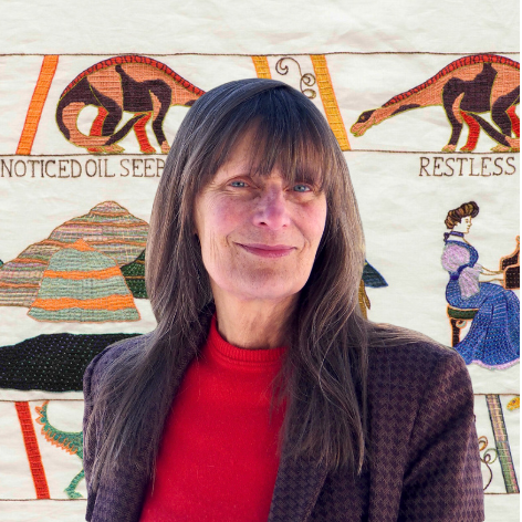 The UI Stanley Museum of Art invites you to hear Canadian artist, filmmaker, and environmentalist Sandra Sawatzky speak about her monumental 220-foot, hand-embroidered narrative, The Black Gold Tapestry, currently on view at the museum.